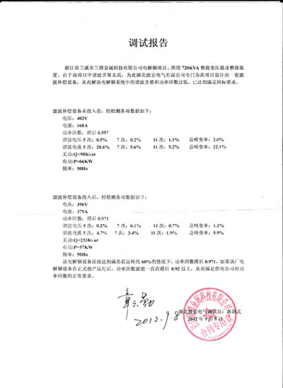 近年來,公司承擔了煤炭,化工,電力及冶金部門多套動態補償及濾波裝置的設備成套,設計調試工作,各項技術指標均達到國內領先水平。
