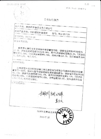 4、 改善電能質量,減少電壓波動,提高電壓穩定性,功率因數可提高到0.95以上,使用戶線損降低可提高配電變壓器的承載效率,經濟效益明顯。